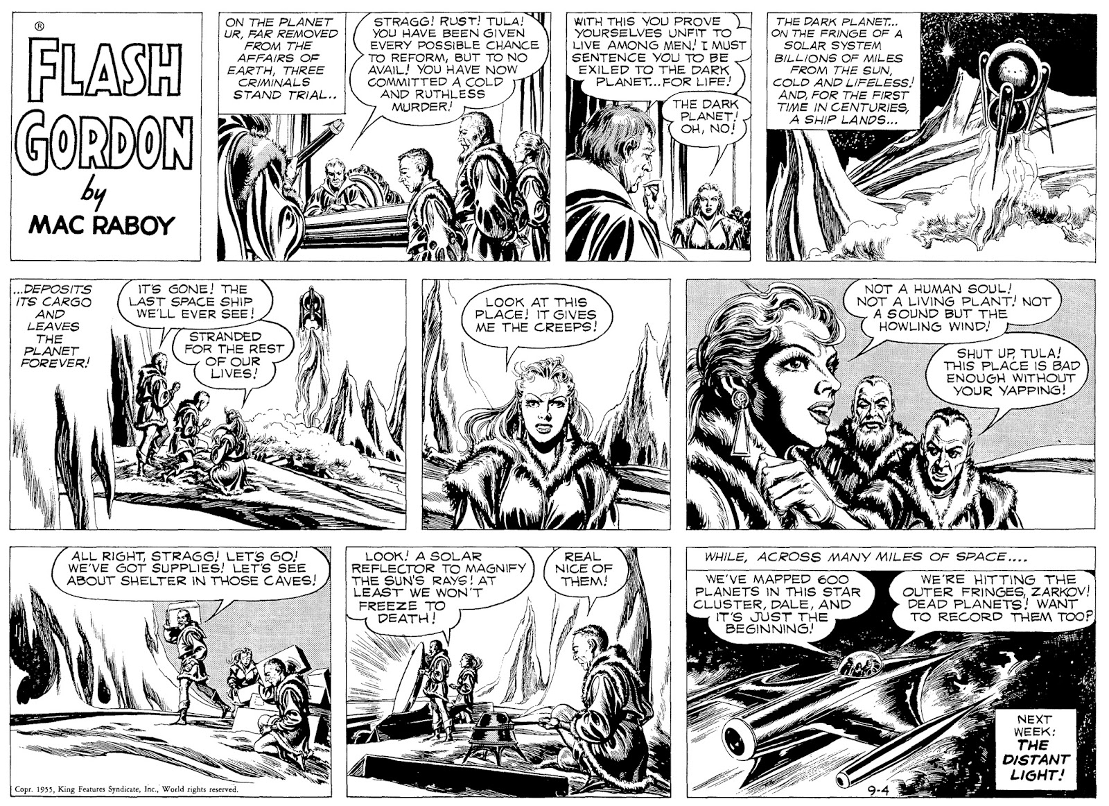 Summary: Charting planets in a star cluster, Flash, Dale and Zarkov approach a barren planet when they pick up a distress signal from the surface, where three murderers have been exiled as punishment for their crimes.